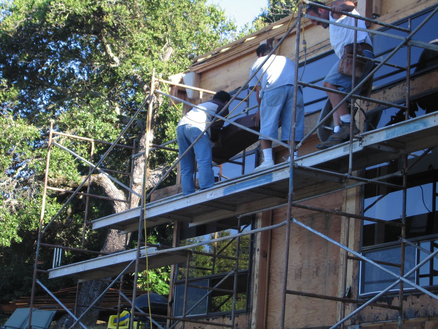 Dale and the crew cut off a 6x14. This is the biggest circular saw (beam saw) you've ever seen. Maybe 16 inches across? Can't wait to see the chain beam saw...