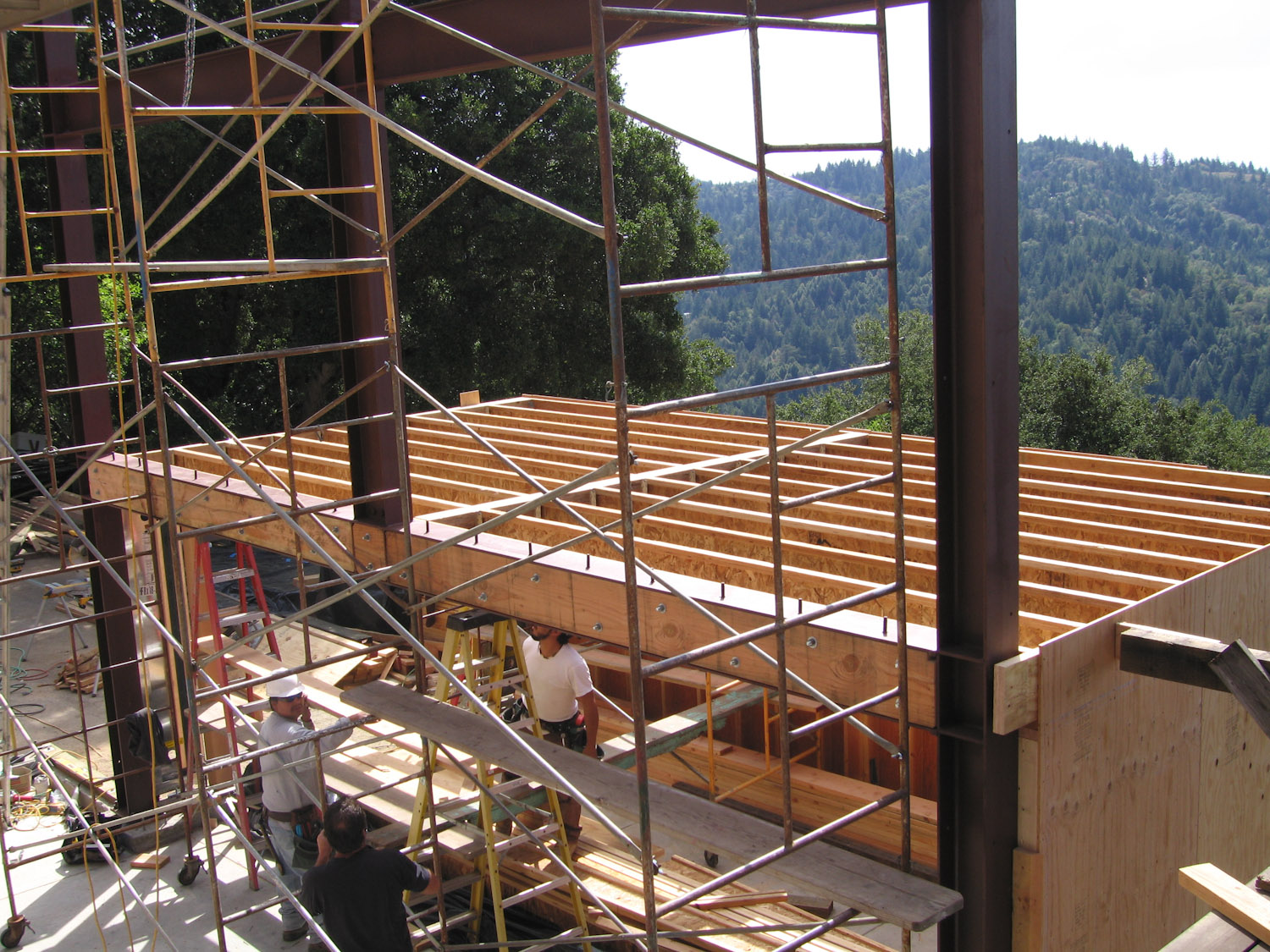 Done! The ceiling of the 1-bay is also the floor of our patio. So if it looks like it's slanting towards the view, it is.