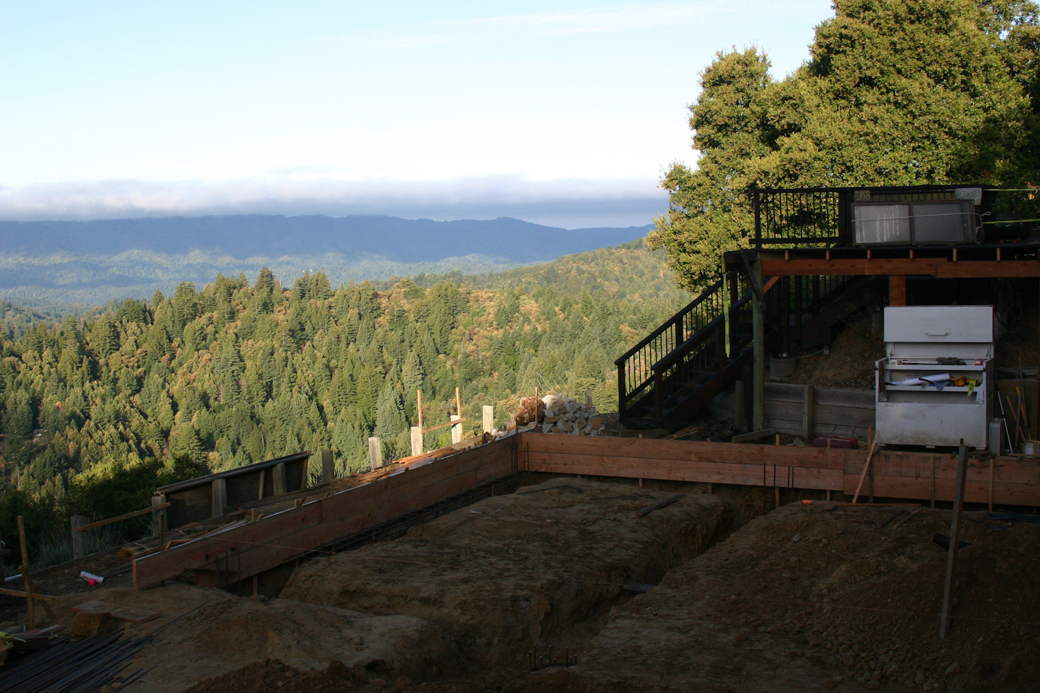 Sunrise on Thursday. The forms made a lot of progress yesterday (our 15th anniversary). The cages have been cut to height.