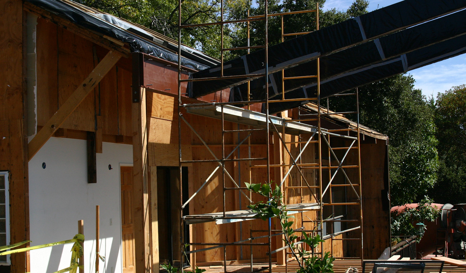 View of the transition beam from outside. Ooo. I spy a concrete mixer in the background...