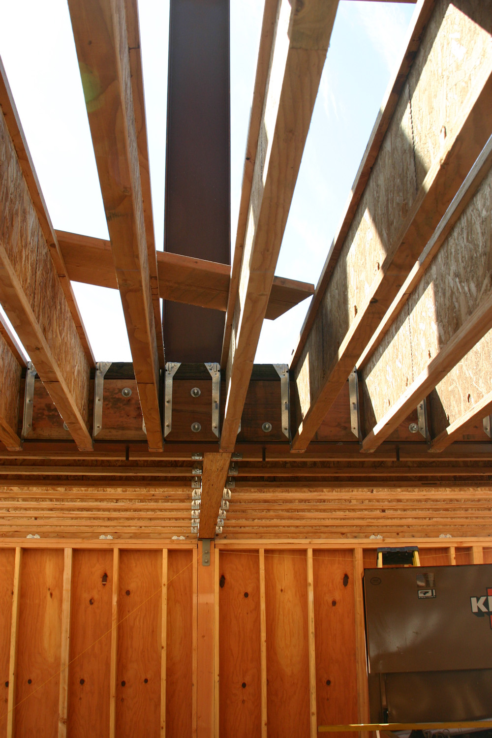 Hardware everywhere - this is the centerline of the garage. All of the joist hangers make a neat pattern.