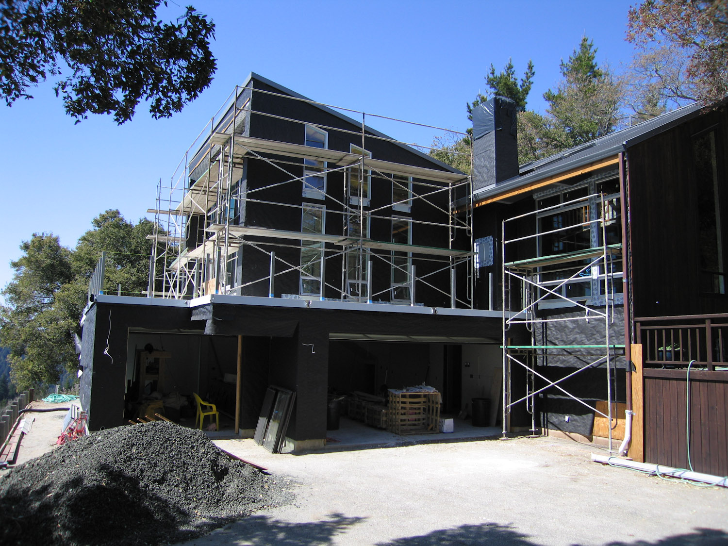 By early afternoon, the scaffold was complete. There's also a rolling setup in the great room which will be used for installing the ceiling, painting, and probably trimming lights and ceiling fans.