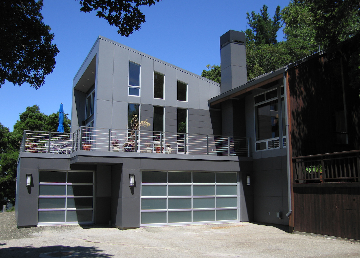 New trim around the garage, matching the roof line. Ahhhh. No more wavy lines. Compare this to